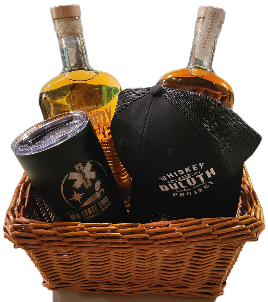 Basket includes a bottle of Shandy Whiskey, a bottle of Old Fashion Mix and a hat donated from the Duluth Whiskey Project. It also includes a laser engraved travel mug from Etched Laser Engraving. **winner can pick basket up at event or free delivery in the metro (outside of the metro we will work something out!)**