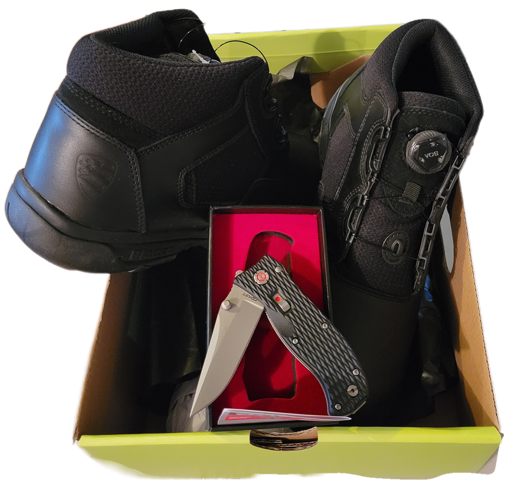 Bauer Strike Shoe 10.5 and Coast Knife. **winner can pick up at event or free delivery in metro (outside of metro we will work something out)**